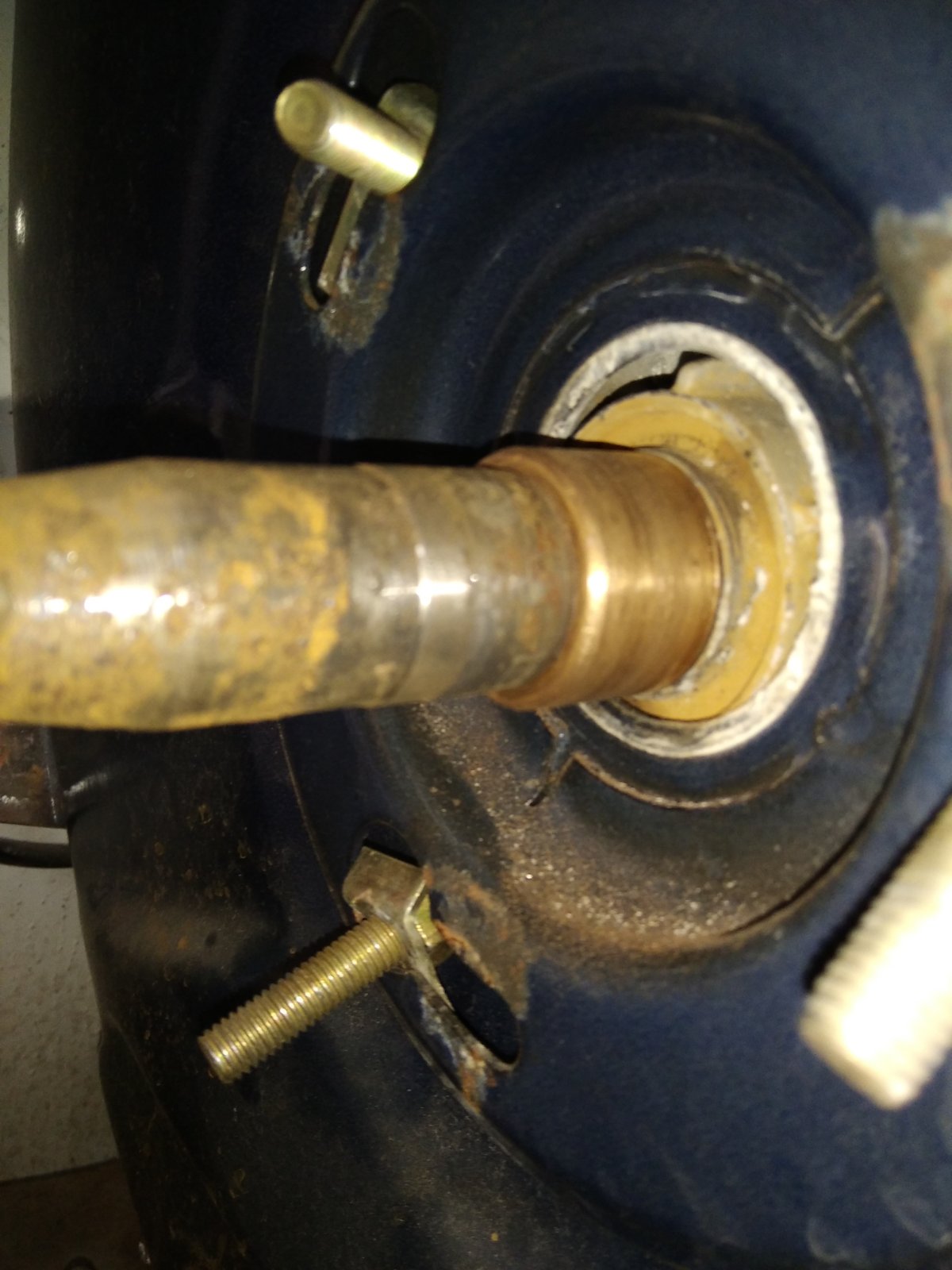Odvrtanjem centralnog vijka oslobađa se remenik, a za njim se može skinuti crveni nosač sa osovine koja ostaje da viri iz kazana (osovina nosi unutrašnji doboš).