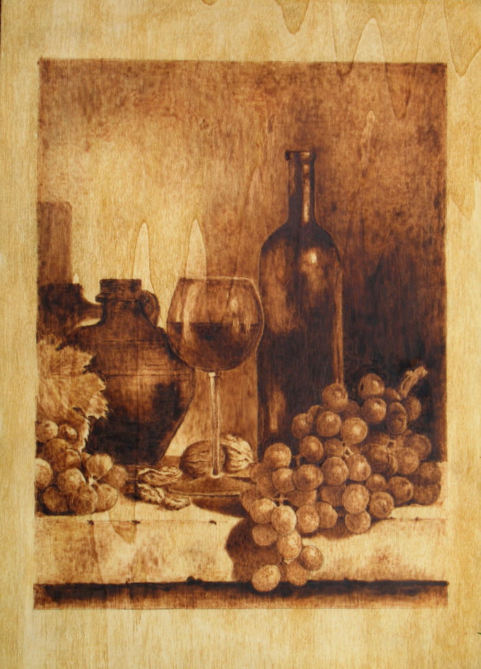Pirografija zahteva dosta vremena jer se u potpunosti radi rukom, a svaka linija se posebno iscrtava. Nakon što se završi pirografisanje, drveni predmeti se često boje.