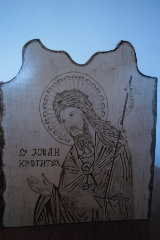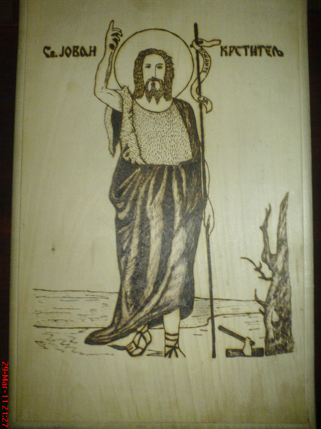 I za kraj još jedna moja pirografija Sv. Jovan Krstitelj, drvo javor.