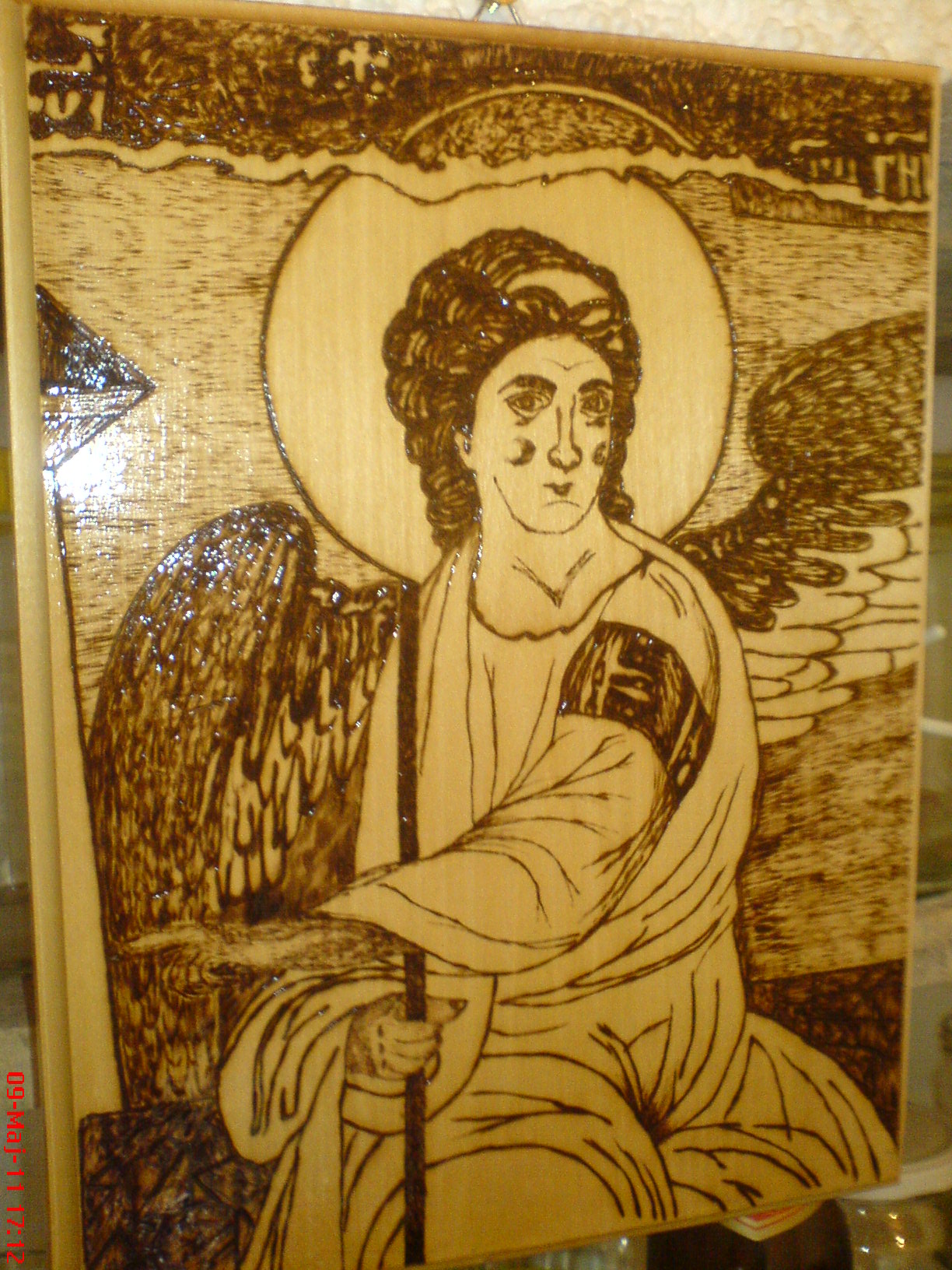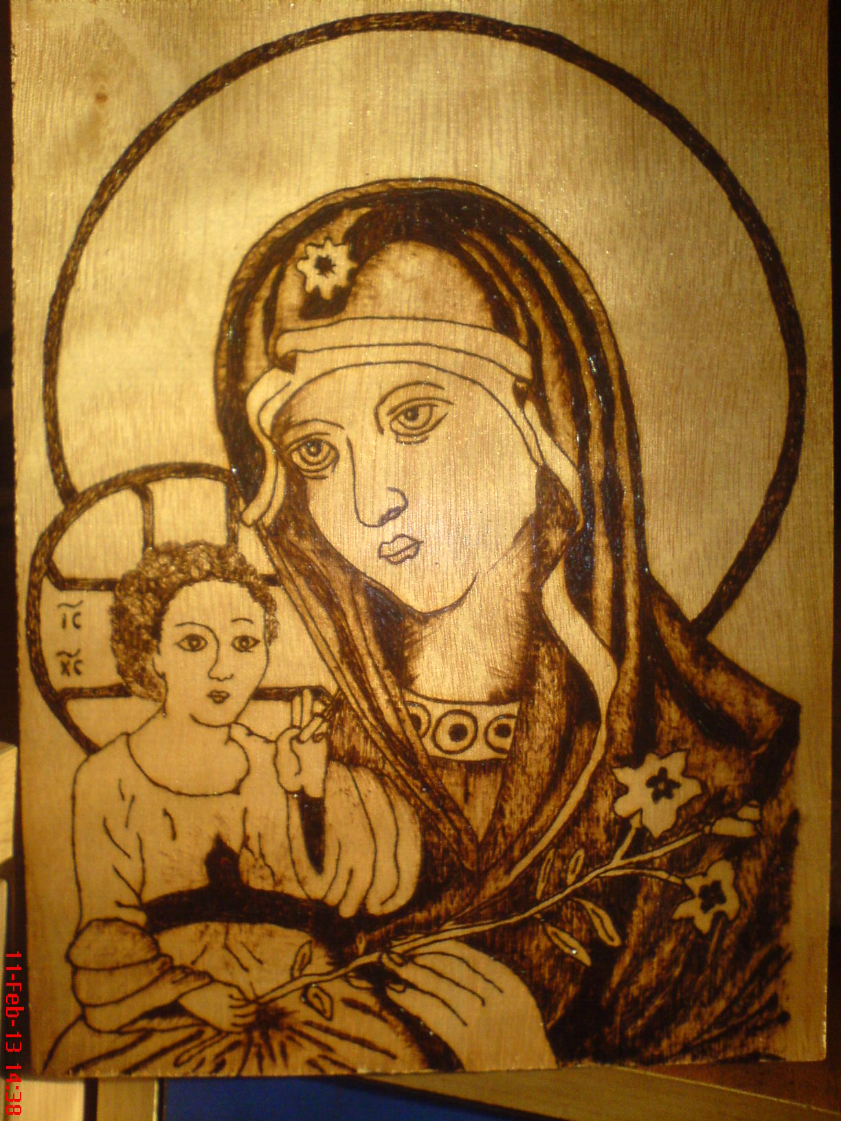 Hvala.Prvo je topola i to neka crvena,drugo je vrba!Lakše se radi na topoli i linije se lakše izvlače.Inače ove ikone je radila moja supruga normalno uz moju podršku.Pirografijom par meseci!Pirografija odmara živce i telo!Laganica.