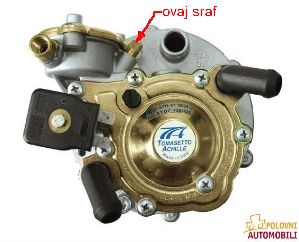 Šaf služi za podešavanje ler gasa. Ako ti i dalje štuca, sa donje strane raspršivača imaš jedan šaf koji služi za ispuštanje prljavštine i ulja od plina. Ugasi motor , odvrni taj šaf i ostavi jedno 5 minuta da se iscedi. Ako i dalje ima mali broj obrtaja u leru , pojačaj ventil dotoka plina u motor koji se nalazi na crevu za dovod i obično je plastičan i crne boje.