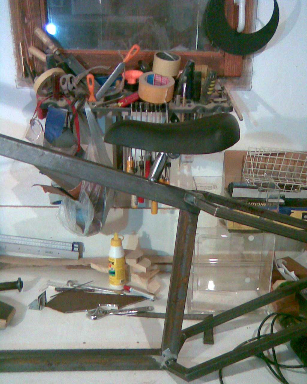 Onda sam probao da malo razmislim o sjedistu, pa sam nabacio otprilike ovo staro od bicikle, a cak sam i napravio nesto, ali ovo mi se za sad vise svidja.