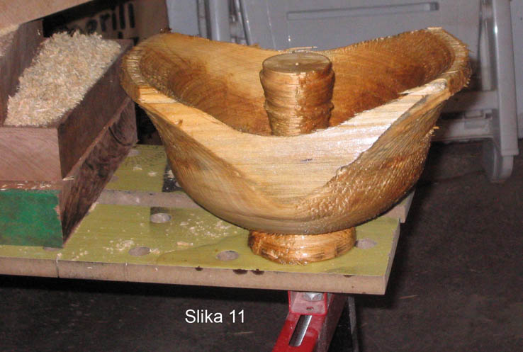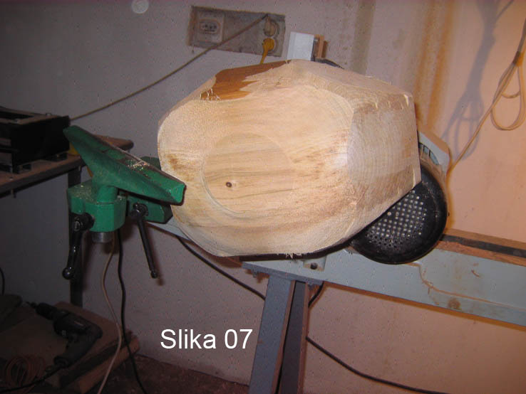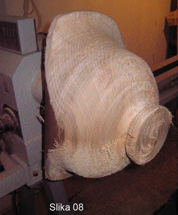 tj, preliminarno zamishljamo formu naseg finalnog proizvoda, mozemo to nacrtati ili pamtiti, po zelji. Analiziramo panj, i priblizno skidamo sav visak materijala da ga ne bi za dz. tokarili.