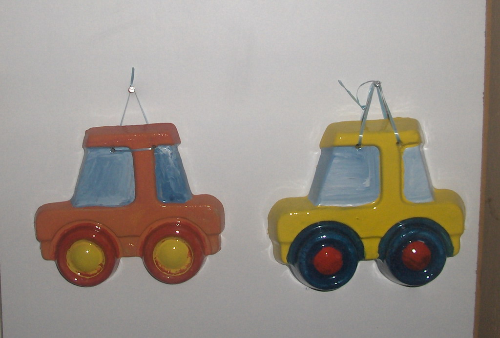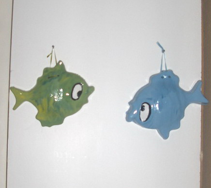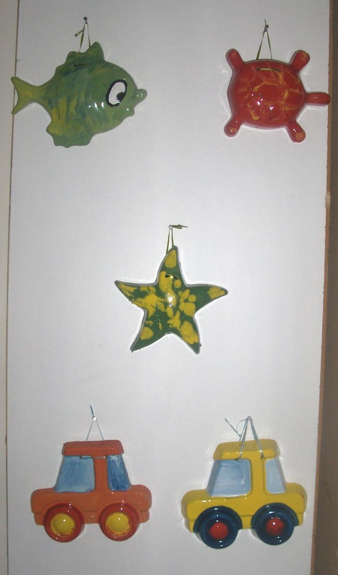 Hvala!!!Boje su akrilne pa ih prelakiram akva lakom!!!Glina nam nikada nije pukla,mi kupimo onu obicnu deciju koja se ne pece!!!