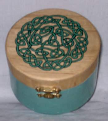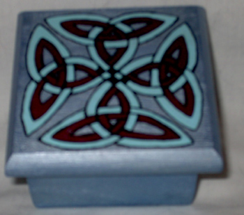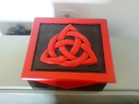 Ako ih radiš retko i po (tuđoj ili svojoj) inspiraciji, za poklone ne moraš da brineš. Druga kutija mi se baš baš dopada. Triquetra, paganski simbol, krajnje jednostavan a tako lep ( više o njemu na Wiki ) ! Ima mnogo varijacija i ne zna se koji je lepši, prijatniji za oko. Simetrija je čudo...