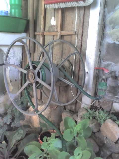 Jedan od načina je da se stara felna ili felga pričvrsti na zid i na nju namorta crevo za zalivanje.