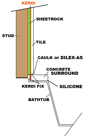 ), i to je sistem raznoraznih vodonepropusnih elemenata za postizanje apsolutne vodonepropusnosti u kupatilima, narocito u tush kabinama (koje su na ovom kontinentu bolna tacka). ovo sto ti imas na slici, bez provere na netu, rekla bih da je jedna od tih membrana, kao gumirano narandzasto platno. opisano je kako se to radi na ovim severnoamerickim zidovima: prvo vertikalni drveni stub (stud), pa sheetrock - "betonska" ploca koja se stavlja kao podloga za plocice, pa kerdi membrana koja se lepi narocitim lepkom, i na kraju preko toga plocice.