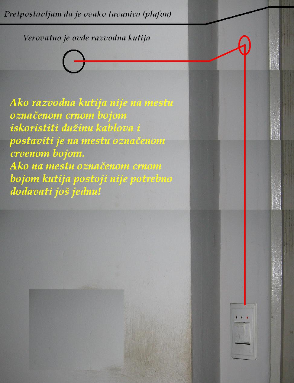 Propisi zabranjuju prosto nastavljanje na mestu postojećeg prekidača i vodoravno vođenje do novog mesta!